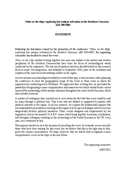 The conference has been cancelled. The organisers have issued the following statement: